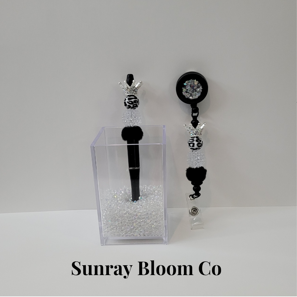 Ms Queen Matching Beaded Badge and Pen Set